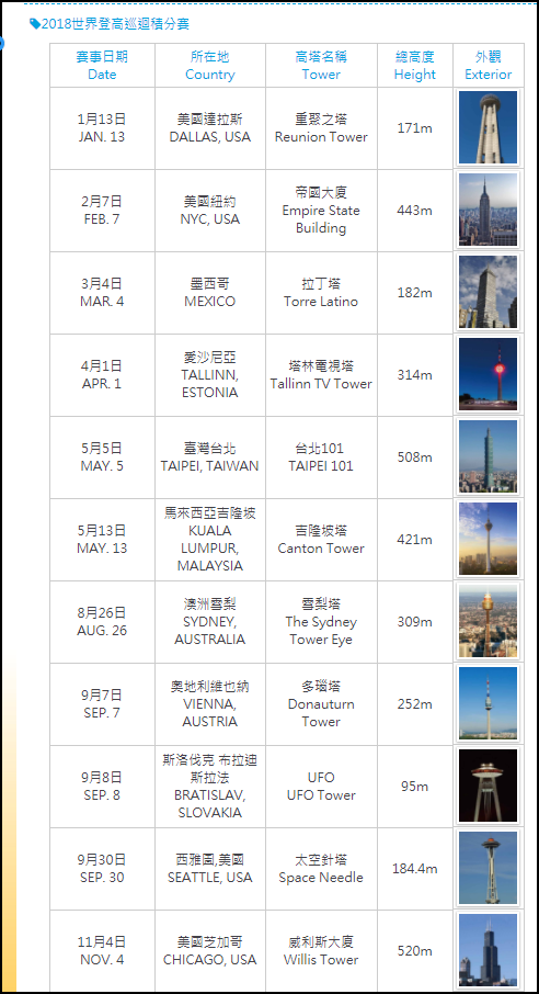 (今年的登高賽事,改名為「垂直馬拉松」,且為2年一次的世界冠軍賽)